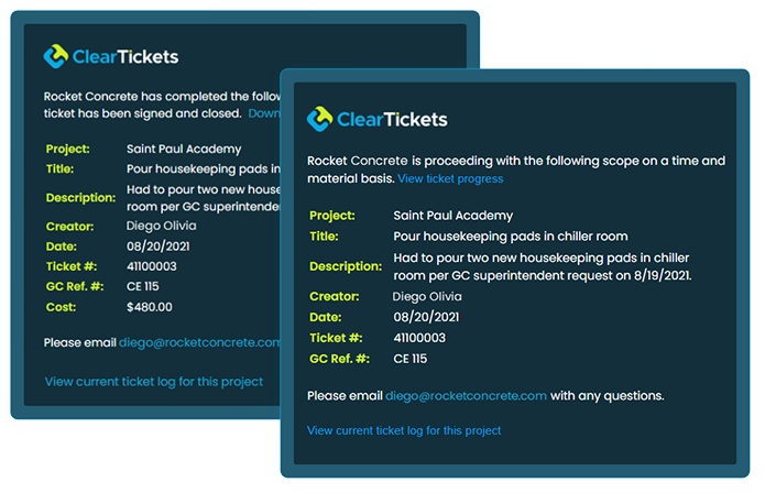 Every contractor and project has different needs. We'll customize forms, integrate with other apps, and evolve ClearTickets to fit your team as needs change.