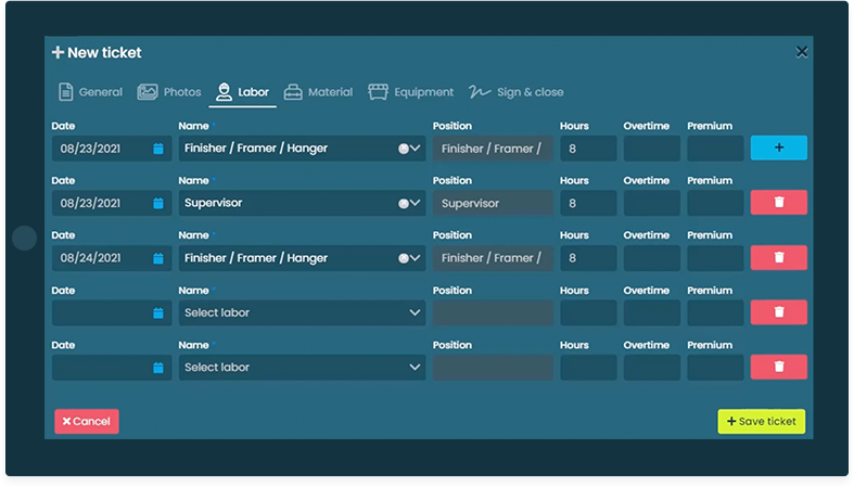 1 Easy labor and material entry